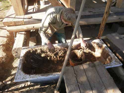Před řezáním na lavici je třeba balík stáhnout ještě jedním provázkem. (P)