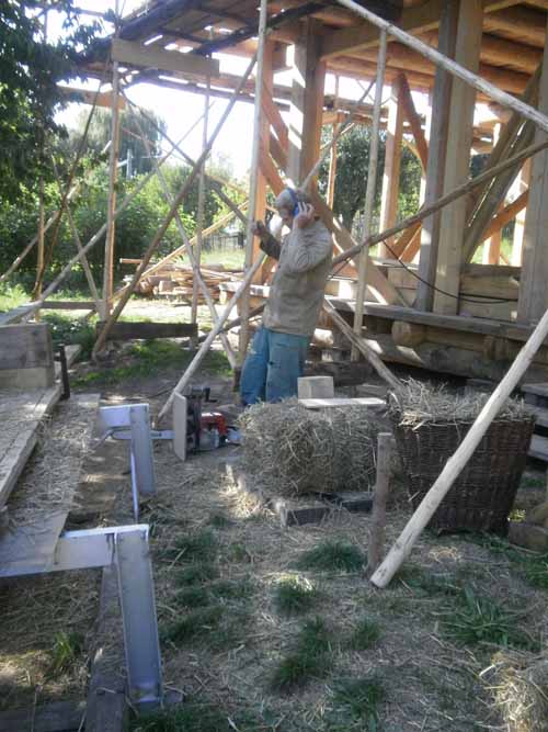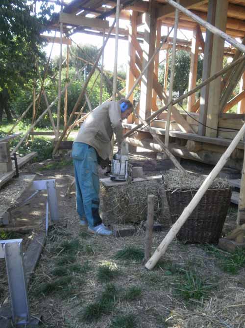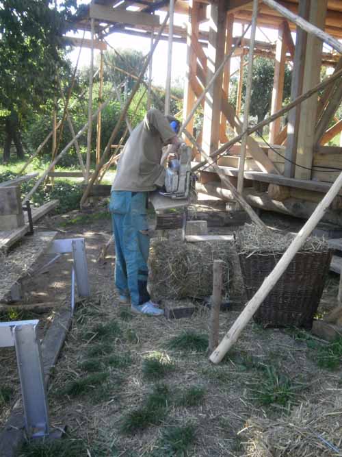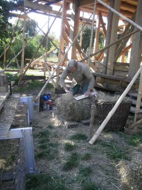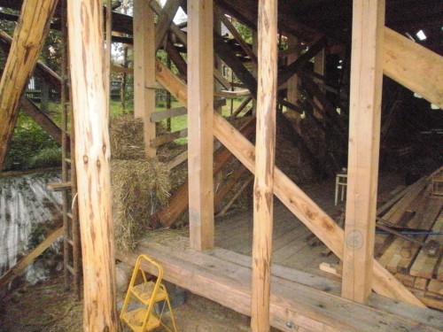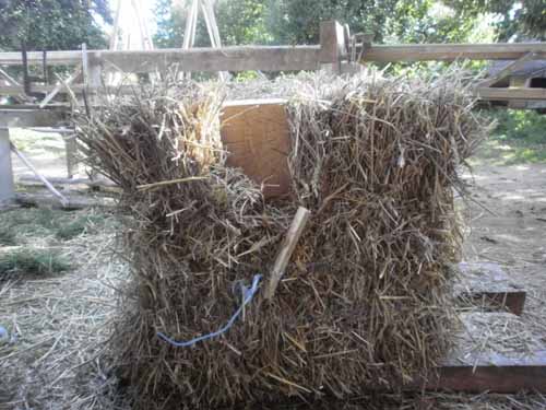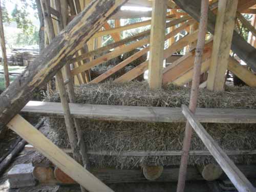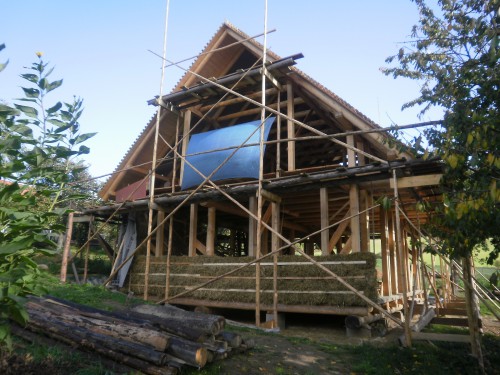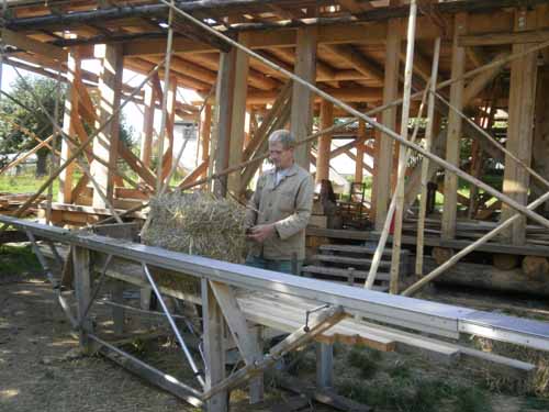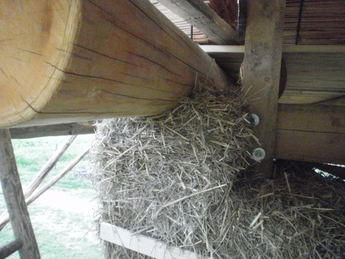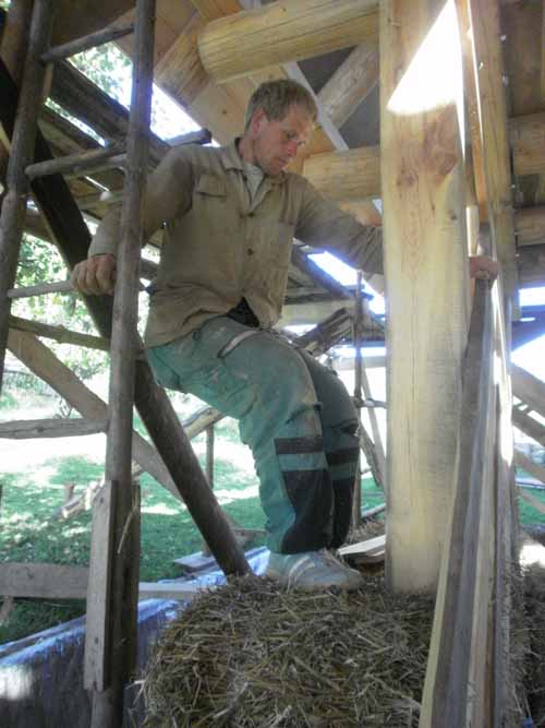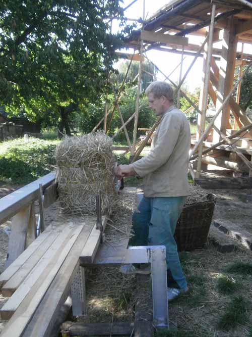 Dneska se konečně sešlo pěkné počasí a kombajn. Měli jsme z toho s Pavlem velikou radost. Vypadá to, že budeme mít slámu na dům. Ještě ale neříkáme hop, protože balíky nejsou v suchu. (L)